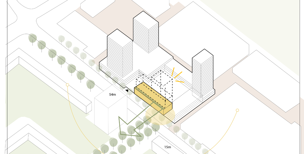 In Amsterdam Noord hebben we een collectief van vastgoedeigenaren begeleid bij het onderzoeken van de ontwikkelmogelijkheden bovenop een bestaand winkelcentrum.